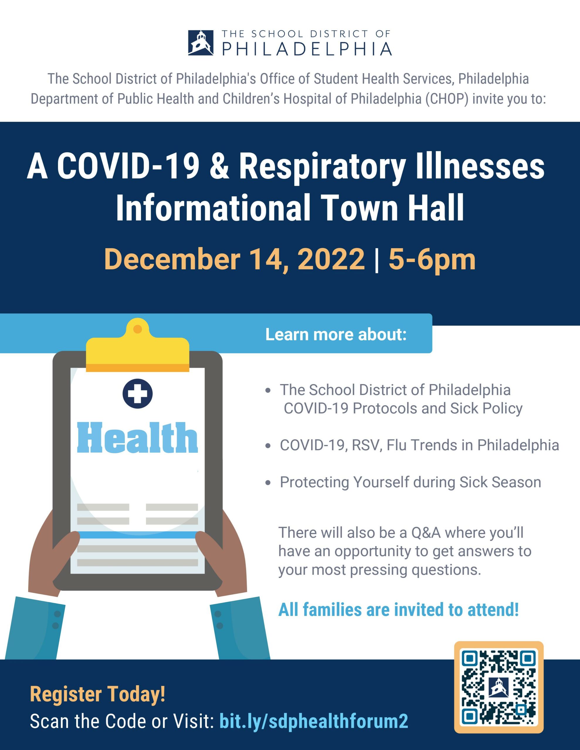 Wednesday, December 14 from 5-6pm The Office of Student Health Services is hosting A COVID-19 & Respiratory Illnesses Informational Town Hall for parents and guardians. In preparation for the winter months and holiday season this is an opportunity to learn about: