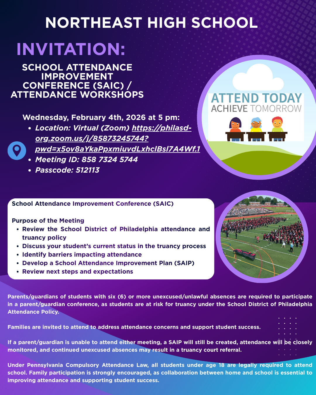 TransPasses – SEPTA TransPasses will be provided by Mr. Monestra in Room 103E during Advisory only. Students must live at least 1.5 miles away from school based on school district calculations in order to qualify for a TransPass.